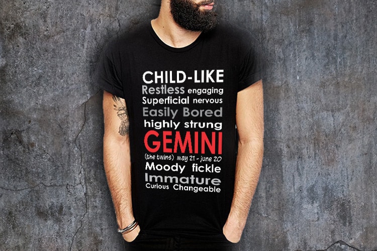 Specifications: “Gemini Positive Negative Printed T-Shirt.”